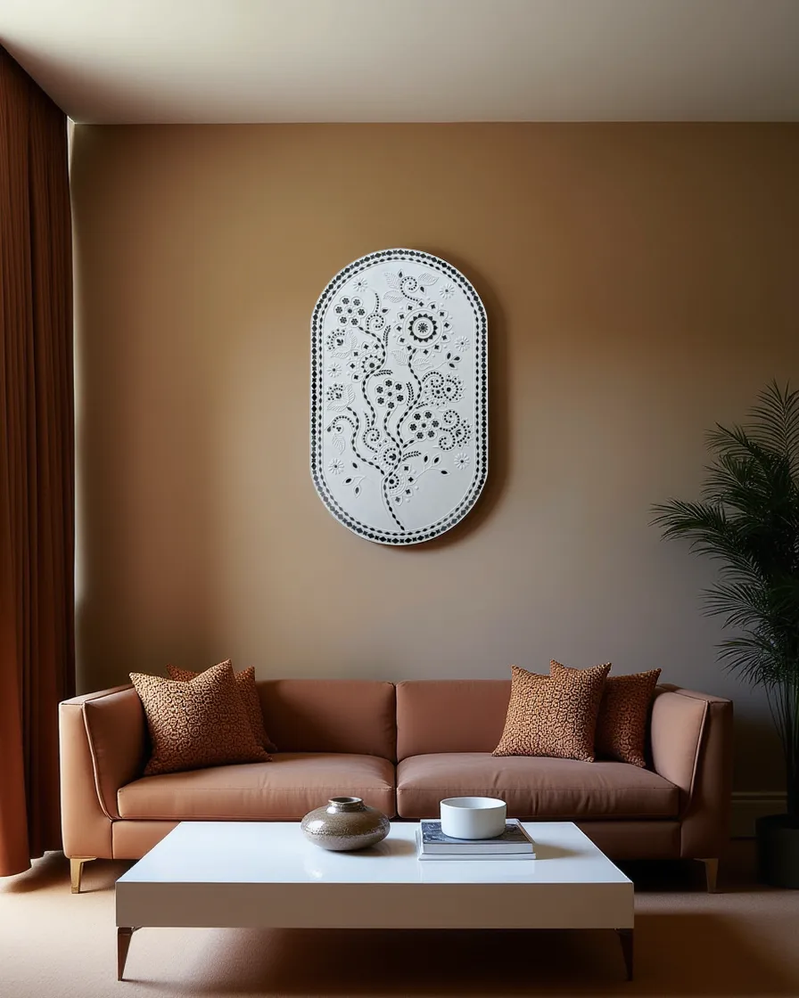 Minimalist Mandala Wall Panel with Tree of Life | Handmade Lippan Art