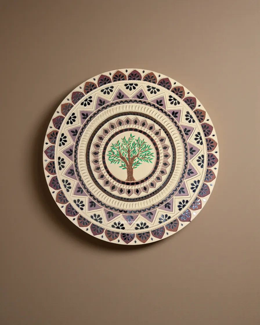 Minimalist Mandala Wall Panel with Tree of Life | Handmade Lippan Art