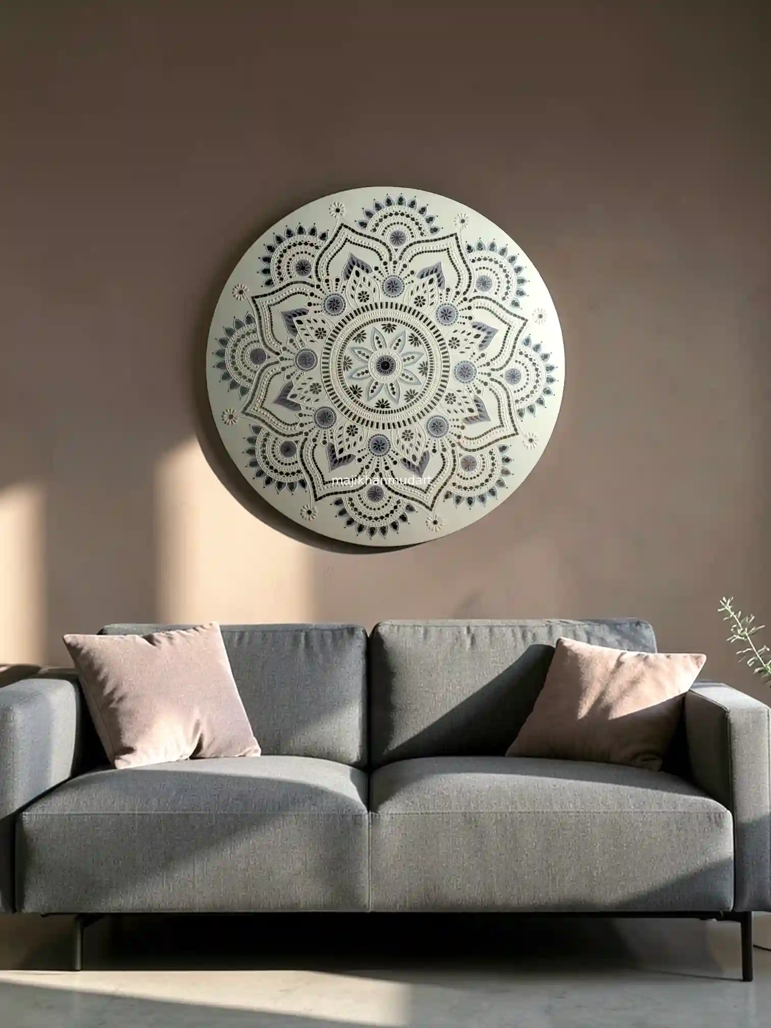 peaceful design Mutva Mud work round large piece| Lippan art round frame| home decor | interior luxury decor